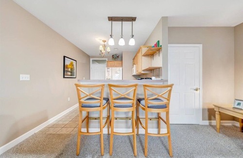 The Kitchen has everything you need to prepare meals. It's equipped with dishware, utensils, appliances, etc. There's a breakfast bar that seats 3 people. Included in the kitchen: coffee, dish soap, hand soap, paper towels, and dishwasher pod.
