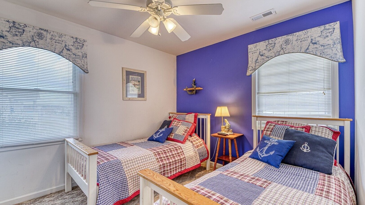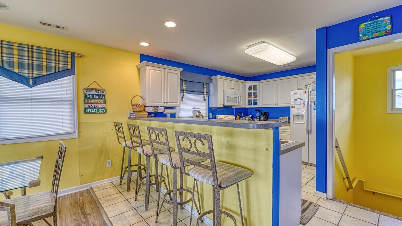 The reverse floor plan boasts an upper level with wide open spaces, including a wet bar for your own island drinks. Cook as you watch the ocean and mingle with your guests in the great room. The Great room also houses a Queen sleeper sofa. The upper level also has a bedroom with 2 twin beds. Adjacent you will find a full bath with shower/tub combo in the hallway to the great room.