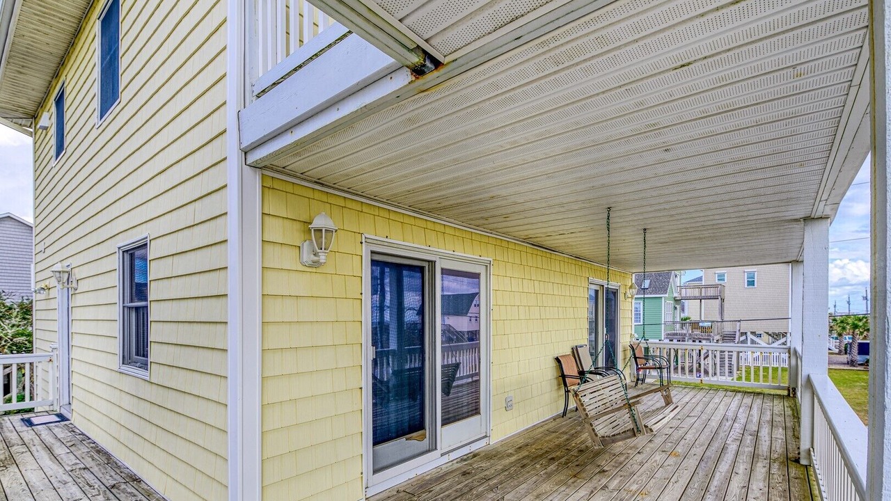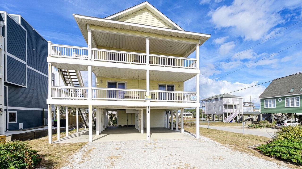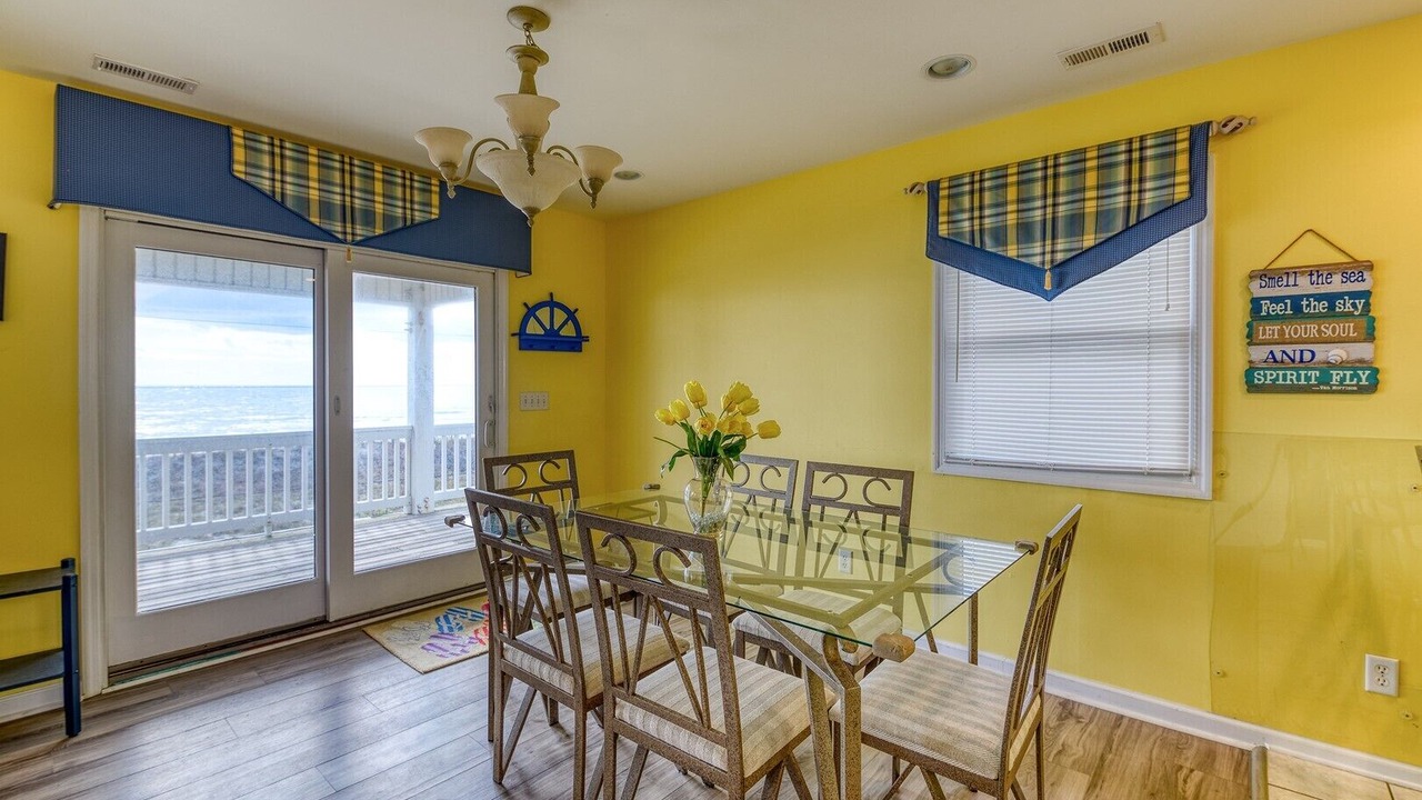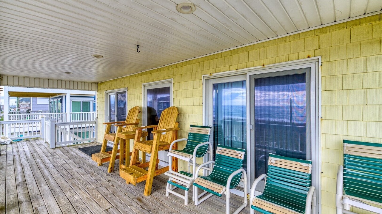 Unobstructed ocean views from almost every room in this great beach house. 2 floors of ocean side covered porches with access to the beach just a hop, skip and jump away (50 ft. or less). Everything you need for the most perfect of family vacations. Plenty of parking for you and your guests underneath the house and on the driveway.