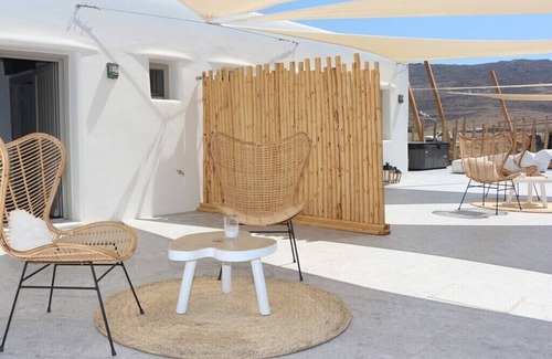 BH058 - C - Suite Mykonos is located in Ftelia. BH058 - C - Suite Mykonos provides accommodation, featuring Hot Tub, Laundry, TV, among other amenities. This Apartment features Hot Tub, Laundry, TV, to make your stay a comfortable one.