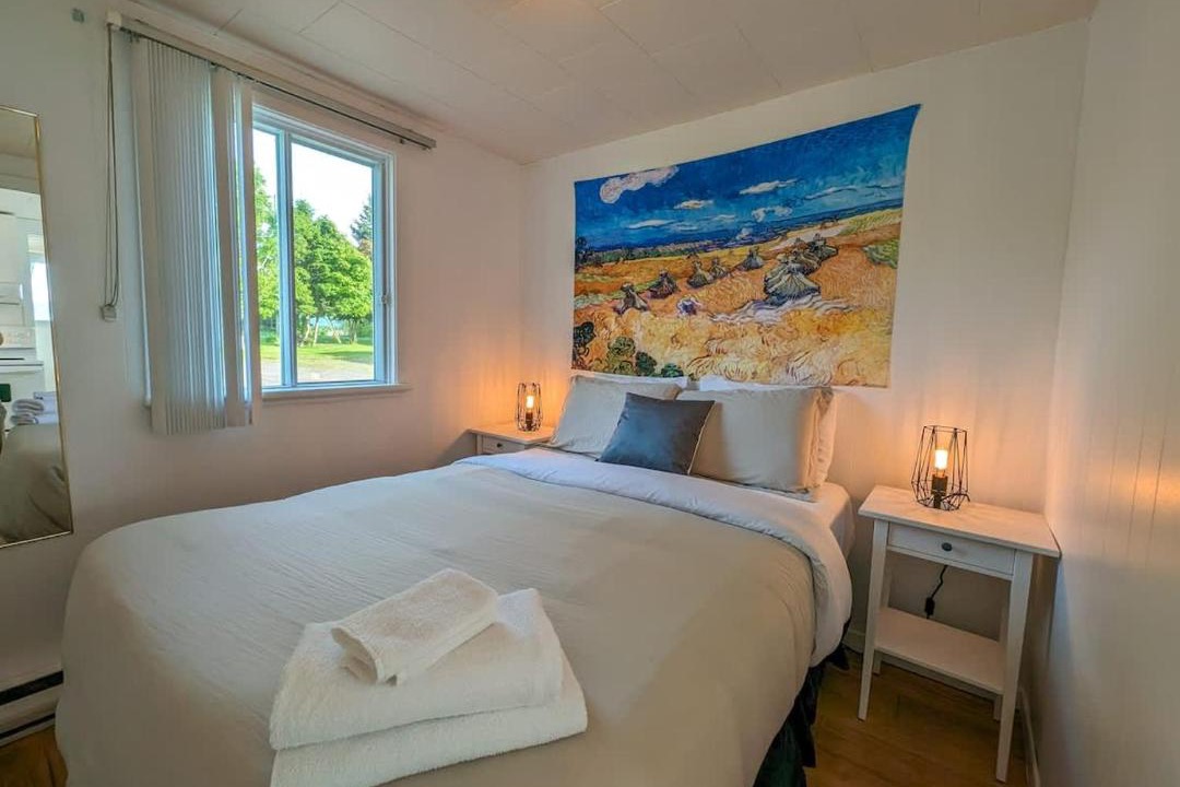 Providing a garden, Chalet #8 Waterfront with Spa, Fireplace, Wifi and AC provides accommodations in Cap-Saint-Ignace. Guests staying at this chalet have access to free Wifi and a patio. Outdoor seating is also available at the chalet. The spacious chalet includes a fully equipped kitchen with an oven and a microwave, as well as a kettle. Towels and bed linen are featured in the chalet. The accommodation offers an air conditioning, a heating, and a private bathroom. Québec City Jean Lesage International Airport is 57 miles away.