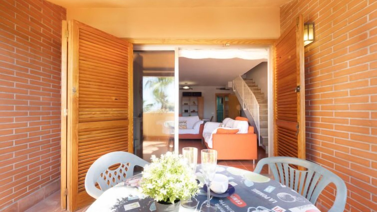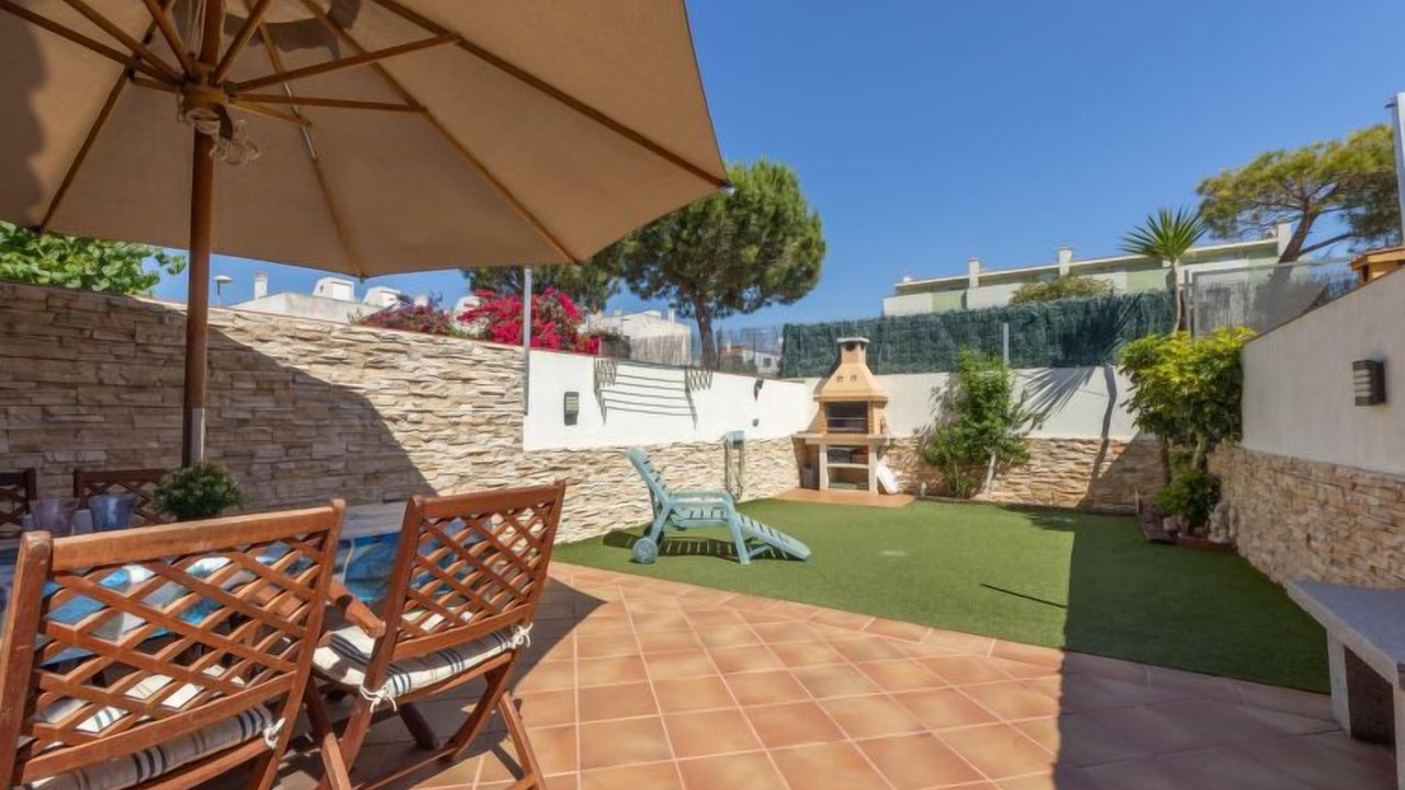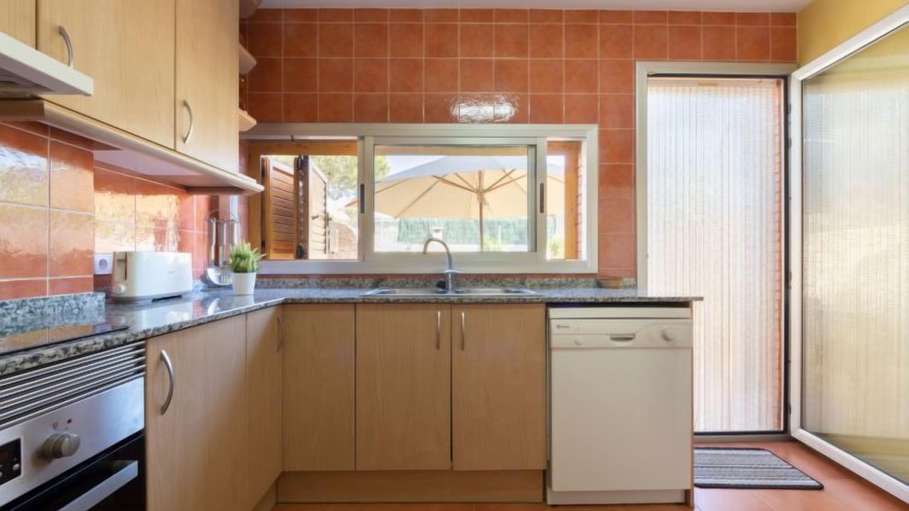 "Creixell", 4-room terraced house 103 m2 on 2 levels. Object suitable for 4 adults + 2 children. Spacious and bright, comfortable and cosy furnishings: living/dining room with dining table and digital TV. Exit to the terrace. Kitchen (oven, dishwasher, 3 induction hot plates, toaster, kettle, microwave, electric coffee machine). Exit to the patio. Shower/WC. Air-conditioning. No heating option. Upper floor: 1 double bedroom with 1 french bed (1 x 150 cm, length 200 cm). Exit to the balcony. 2 rooms, each room with 2 beds (90 cm, length 190 cm). Bath/bidet/WC. Air-conditioning. Large patio. Terrace furniture, barbecue, deck chairs (1). Facilities: washing machine, iron, children's high chair, baby cot for up to 2 year olds, hair dryer. Internet (WiFi, free). Garage on the property. Please note: suitable for families. Non-smoking house. TV only ES. Private entrance. HUTT-058632