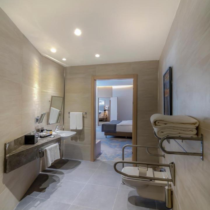 Food & DrinkChocolate/Cookies, Wine/Champagne, Minibar, Bottle of waterBathroomBody soap, Conditioner, Hairdryer, Toothbrush, Bathrobe, Free toiletries, Slippers, Bathtub or shower, Toilet paper, Shower cap, Toilet, Shower, Towels, ShampooGeneralTrash cans, Heating, Key card access, Hypoallergenic, Ironing facilities, Safe, Soundproof, Fire extinguisher, Carpeted, Mosquito net, Iron, Smoke Alarm, Air conditioningMedia & TechnologyFlat-screen TV, TV, Telephone, RadioServicesWake-up service, Wake-up service/Alarm clockLiving AreaSofa, DeskViewViewBedroomAlarm clock, Linens, Wardrobe or closetKitchenCleaning products, Electric kettleAccessibilityUpper floors accessible by elevator, Accessible by elevatorRoom AmenitiesDrying rack for clothing, Clothes rack, Socket near the bed, Non-feather pillow |