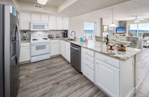 FREE PARKING AND FREE WIFI!!! Slip away to the dazzling blue waters on the Gulf of Mexico and stay at Gulf Dunes 401 East. Bright and beautiful throughout! Newly updated kitchen countertop, and backsplash!!! This end unit features additional side windows for more natural light and expanded views. FLAT SCREENS TVS THROUGHOUT THE UNIT. This unit also features secure, WIRELESS internet. This three-bedroom/three-bath end unit features side windows and numerous upgrades. Click on "photos" to view the upscale furnishings throughout each room. The master bath also features a separate tub and shower and dual sinks! You are sure to love it.