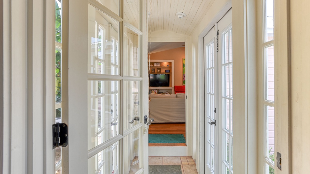 Bedroom 2 has 2 twin beds with memory foam mattresses (or we can combine to make a King), 3 walls of windows, a large closet and a set of antique french doors leading to a small balcony.