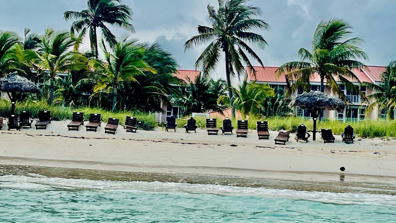 • Beautiful and well-maintained private beach with beach chairs and thatched roof umbrellas