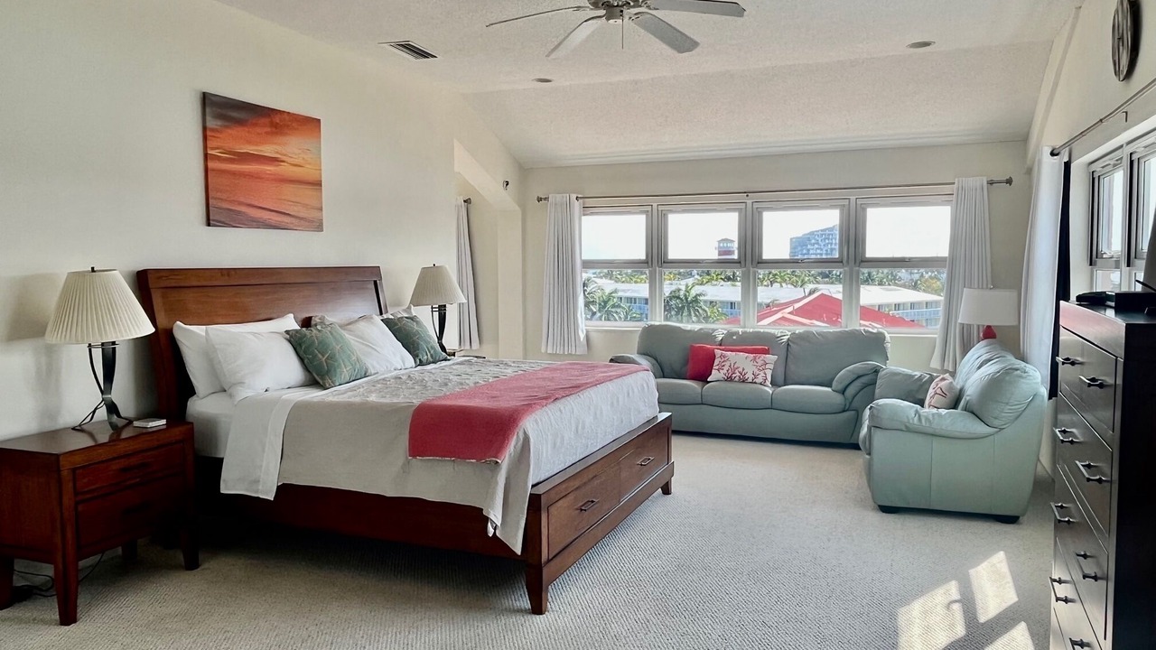 This Bell Channel Club & Marina large penthouse has panoramic water views of the ocean, canal and marina from every window. This end unit condo has over 2200 square feet of living space, with 3 bedrooms and 3 full bathrooms. The second-floor master suite is oversized with a large master bath. The views are spectacular.