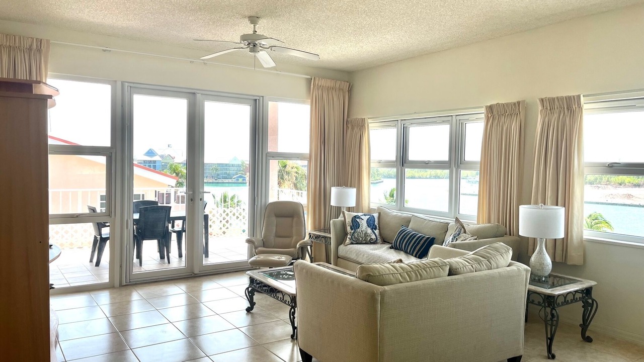 The unit is nicely decorated and well-maintained. The kitchen is spacious and well equipped. Off the living room and canal side bedroom is a large deck with a 270 degree water view. The deck has a dining table to seat 6 comfortably. Perfect for coffee in the mornings and sunset dinners.