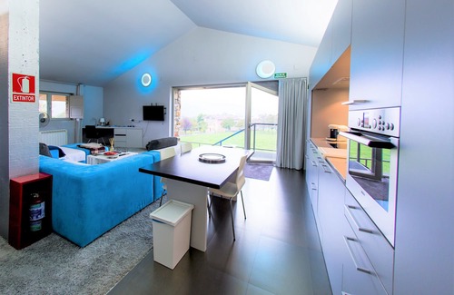 Last floor in a traditional Basque house (Baserri in Basque). A functional, practical, wide, bright and changing style depending on the lighting chosen. They are 62m2 in open (without doors or locks), ceiling of 4. 00m in the highest part and 2.50 in the lowest one. The intention of the style is to give prominence to the person. It is the one that really brings life and color. The idea is to make the occupant feel like the main part, pretending a sensation of fluidity in color and space besides a warm touch that invites to the contemplation and the relax. It certainly has character. Thank you for choosing this option and I trust that this baserri will contribute something of what you expected or looked for before arriving. I hope with all my heart that you find yourself at home in this house that welcomes you with great affection, humility and respect. Always welcome. The Loft occupies the entire last floor of a traditional basque house called "Baserri" in Basque, owned by the same family since construction .... A functional, modern, spacious, unique, practical, wide, bright and changing style depending on the lighting chosen. Open -Plan Minimal design with 5m ceilings and lots of space is nicely decorated and fully equipped. You want to miss anything. Its full of surprises. Central huge rectangular glass with panoramic views. Huge sofa that encourages you to lay down on it. Comfortable King Size bed. Extra spacious Shower and bath. Fully equiped Kitchen. Masive private terrace. Independent private entry and more ....... The intention of the style is to give prominence to the person. It is the one that brings life and color. The idea is to make the occupant feel like the main part, pretending to be a sensation of fluidity in color and space besides a warm touch that invites to the contemplation and the relax. It certainly has character. Thank you for choosing this option. The loft will not leave you indifferent. I hope with all my heart that you find yourself at home in this house that welcomes you with great affection, humility and respect. Always welcome.