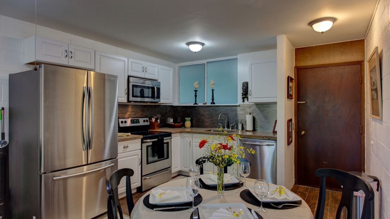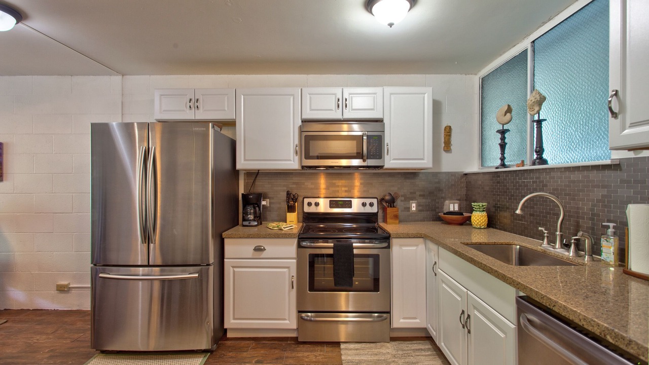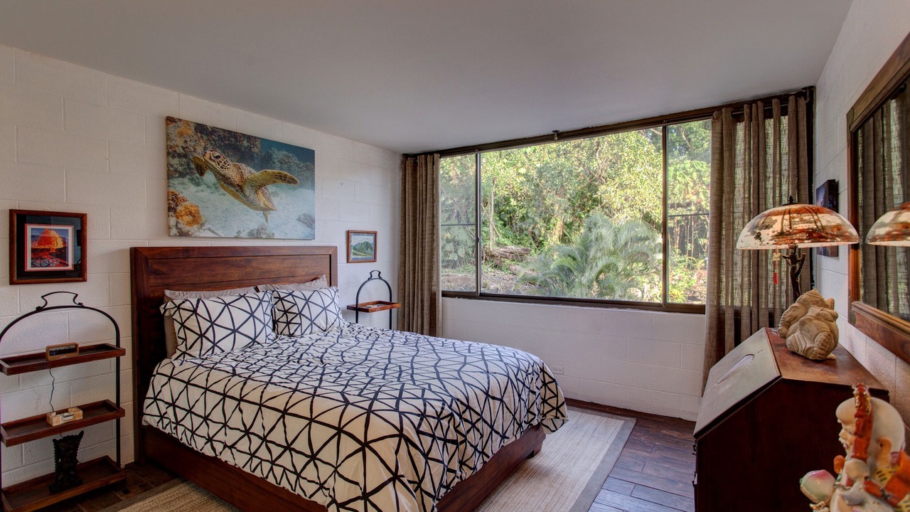 This recently renovated ground floor, garden view 2 bedroom, 1 bath condo in Hilo is beachfront next to Carlsmith Beach Park where you can swim and snorkel all day every day and get up close to the sea turtles! Your home-away-from-home has everything you need for the perfect getaway or extended vacation. The living room is the perfect place to relax after a long day sight-seeing around the Big Island, with a cable TV, DVD, a DVD library, lots of books and games, and of course cable and unlimited high-speed internet. The kitchen is well-equipped with high-end stainless steel appliances, including a dishwasher, and ideal for making those scrumptious island meals using all the goodies you picked up at the Hilo Farmer's Market. Eat inside at the dining table, or outside on the lanai and let those island breezes take you away. Each bedroom has a comfortable queen bed. The remodeled bathroom is gorgeous. The laundry facility can be located at the end of the corridor. There are complimentary quarters in the jar in the kitchen.