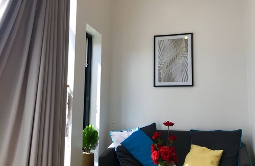 Almost everything in the house is either new or has just been renovated (Jan 2020). The interior in general has a modern style, whereas the bedrooms in particular have a different interior style, although the amenities are the same. One big room (two beds for up to 4 persons) has a clearly modern style, one double room has a more classic look, whereas a second double room is a mixture of a modern and a classic style.