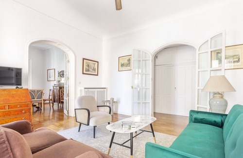 This apartment is located in an emblematic building in the Las Letras neighbourhood, also known as the Huertas neighbourhood.In addition to being the most attractive area of the city due to its buildings, streets, antique shops and atmosphere, Las Letras is just a few steps away from the Prado Museum, Recoletos Promenade, the Courts, the Neptune Fountain and many other must-visit places in Madrid.The apartment:This apartment is located on the third floor of a building with an elevator. Its main attraction lies in the luminosity provided by the 7 balconies facing the street; something very unusual that will allow you to enjoy the most authentic atmosphere of Madrid from the heights.Like any old house of this category, it has a spacious entrance hall that leads to the long corridor from which each room derives. Three of the bedrooms and the living room have balconies facing the street; the kitchen and bathrooms are interior, as is a fourth, smaller bedroom.This large apartment has capacity for 8 people, distributed in 2 bedrooms with a double bed and 2 bedrooms with two separate beds each.The living room, spacious and bright, is divided into two rooms separated by wooden doors.The decoration, conservative and respectful of the original character of the dwelling, features many antique pieces of great sentimental and artistic value that, combined with more modern pieces, give the environments an elegant and sober touch.The apartment has 2 simple but practical bathrooms and a spacious fully equipped kitchen, equipped with a table and chairs.There is air conditioning and Internet in all rooms.To take into account:IMPORTANT: This apartment is only offered for seasonal rentals, in accordance with article 3 of the Urban Leases Act (LAU). Clients will sign a seasonal lease agreement upon arrival.Respect: In order to ensure good coexistence and respect for neighbours and residents, this apartment is equipped with a 24-hour noise monitoring system. Guests are obliged to comply with the established rest hours at all times.The check-in process involves a mandatory online registration for each guest, prior to accessing the apartment. It will be essential to have a mobile device and internet on the phone to access the apartment.Please contact our team 48 hours before your arrival and carefully follow the instructions made available to you at all times. Mit House is not responsible for any delay in entry to the apartment for not having carried out said prior process.Access to the apartment: this apartment is located within the Area called MADRID CENTRAL with restricted access to road traffic. Please note that, to access the apartment by private vehicle, you must have the corresponding approval from the Municipal Traffic Directorate (DGT). Otherwise, you can only access the apartment on foot, or by public transport, taxi or VTC. Mit House is not responsible for any municipal fine in this regard.
