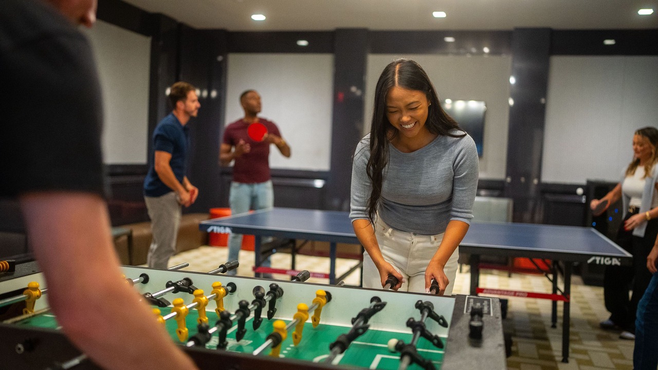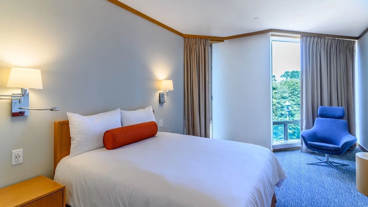 Discover an accessible Hudson Valley retreat designed for ease, comfort, and enjoyment. This ADA-friendly queen guestroom offers a roll-in shower, strobe alarms, and a lowered door peephole for a seamless stay. Step outside to savor locally inspired dining, rally on the tennis courts, or join the fun in the lively game lounge with foosball and more. Surrounded by nature yet minutes from NYC, it’s a tranquil escape with city convenience!