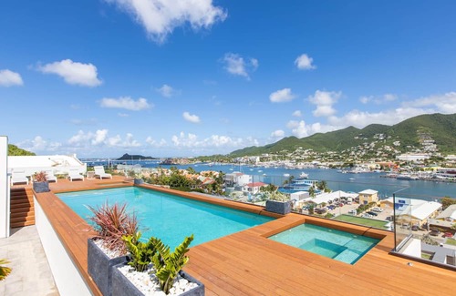 The type of stay that will make you say I’m never going home! This paradise retreat is at the heart of the island's hotspot “Simpson bay”. Breathtaking views from the rooftop lounge with a pool and hot tub.