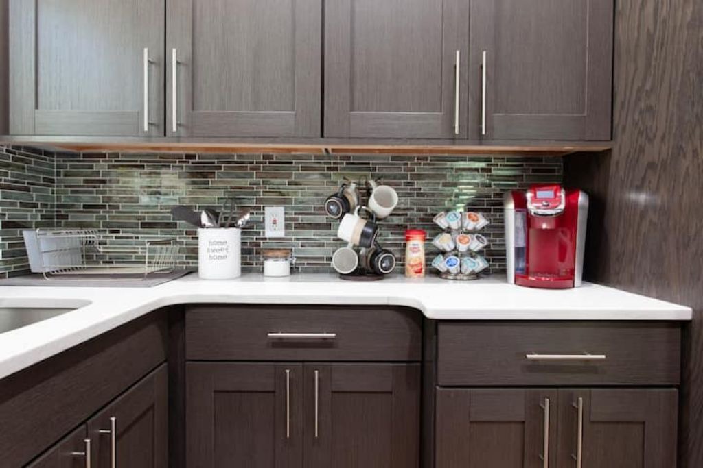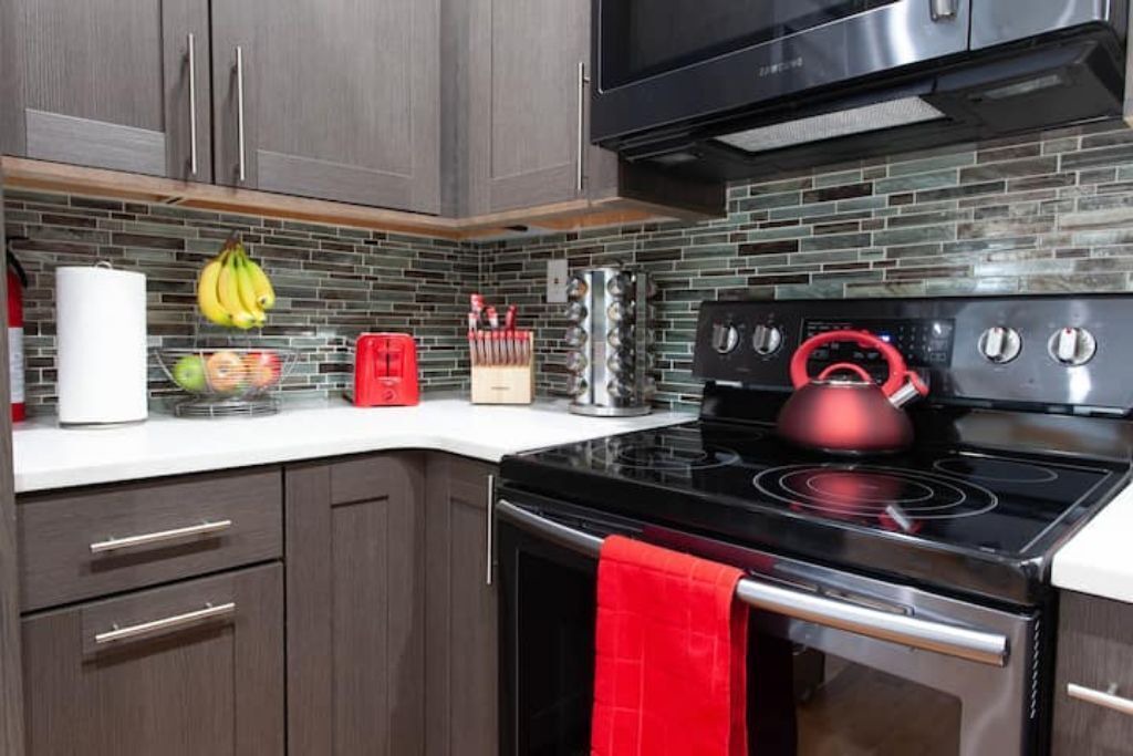 The brand new kitchen has everything you need to whip up a delicious meal. There’s even a high end coffee maker so that you can start the morning right (and fresh fruit for a healthy snack).