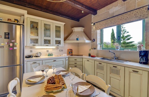 All stone-wood traditional building, w Cretan decoration, in olive trees. Excellent mountain, country side and sea view.