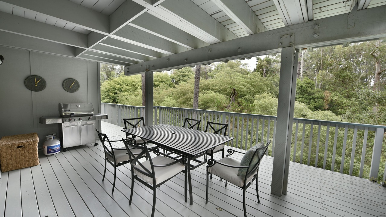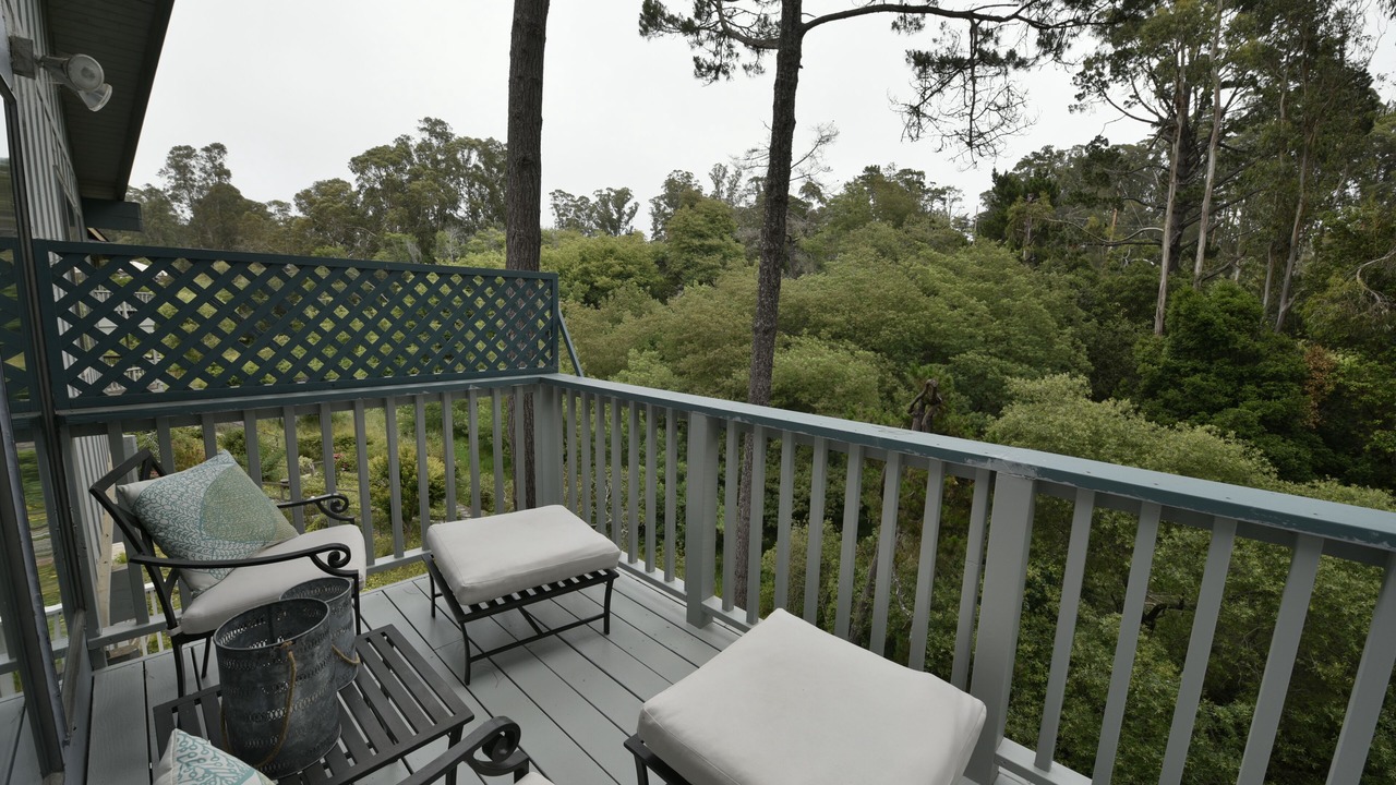 A picturesque location with lots of privacy on this tranquil Monterey Pine lined street overlooking the 8th tee of Seascape Golf Course. The view from the back deck makes you feel like you are living in a treehouse and, when the conditions are right, you can even hear the relaxing sounds of crashing waves. Enjoy the short walk (8 houses) to the woodsy path leading down to the beautiful and uncrowded Hidden Beach, see photos.