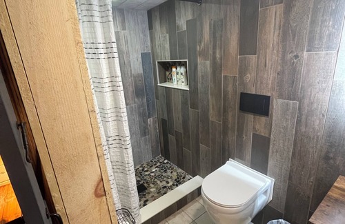 Escape to The Cabin at the Lodge, your secluded retreat nestled in Sodus Point. This cozy 1-bedroom haven offers modern comforts, including a spa-like shower, 50" TV, Wi-Fi, and air conditioning. Enjoy the convenience of a Keurig, microwave, and mini-fridge. Just steps from vibrant bars, restaurants, and a stroll away from serene beaches and historic lighthouses. Experience the perfect blend of tranquility and adventure at The Sodus Point Lodge.