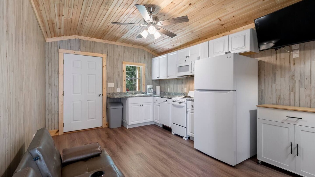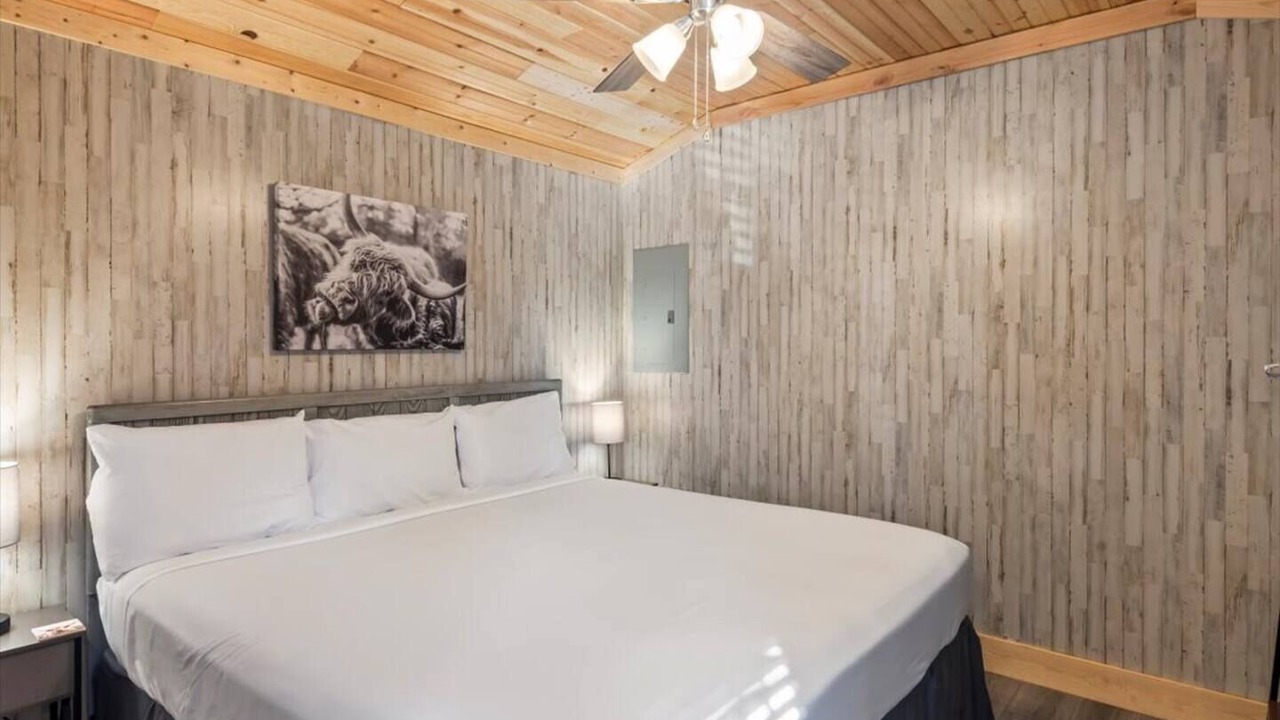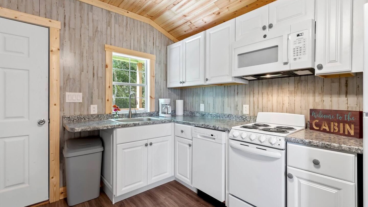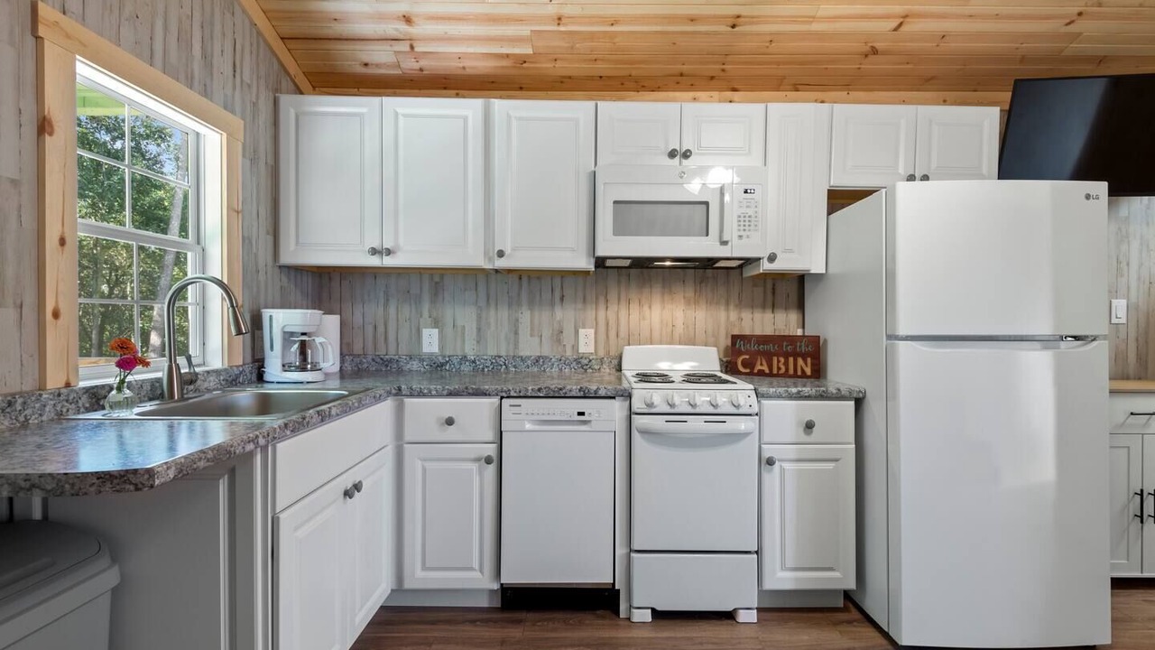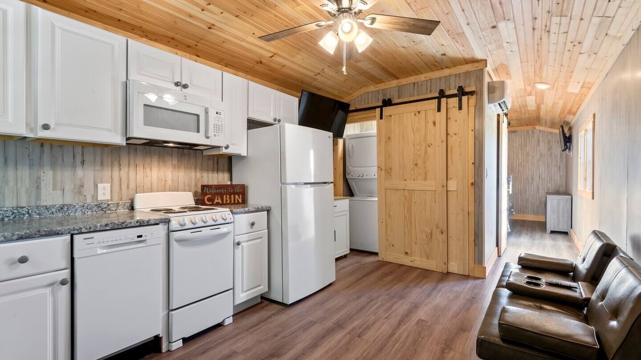 Get away from it all at this cozy cabin! This one bedroom one bath tiny home is one of five cabins on over 10 acres. Enjoy fishing in the stocked pond or relax on the porch taking in the views. This is a perfect getaway for fisherman visiting the lake or couples. Or there's even a futon sleeper for the kids. Have a larger group? Ask about renting all 5!