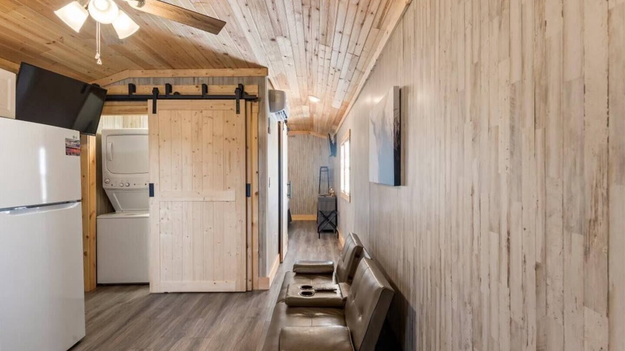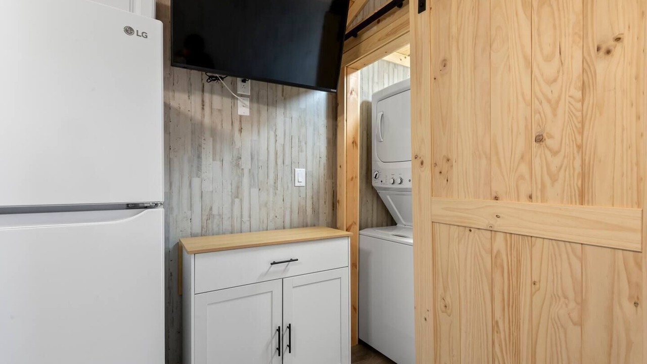 While this is a one bedroom tiny home, there is a futon sleeper in the living/dining space. If you have 2 small children, they would fit, but ideally it best fits one. You're welcome to bring an air mattress for the extra little ones, just know that it might get tight in there.